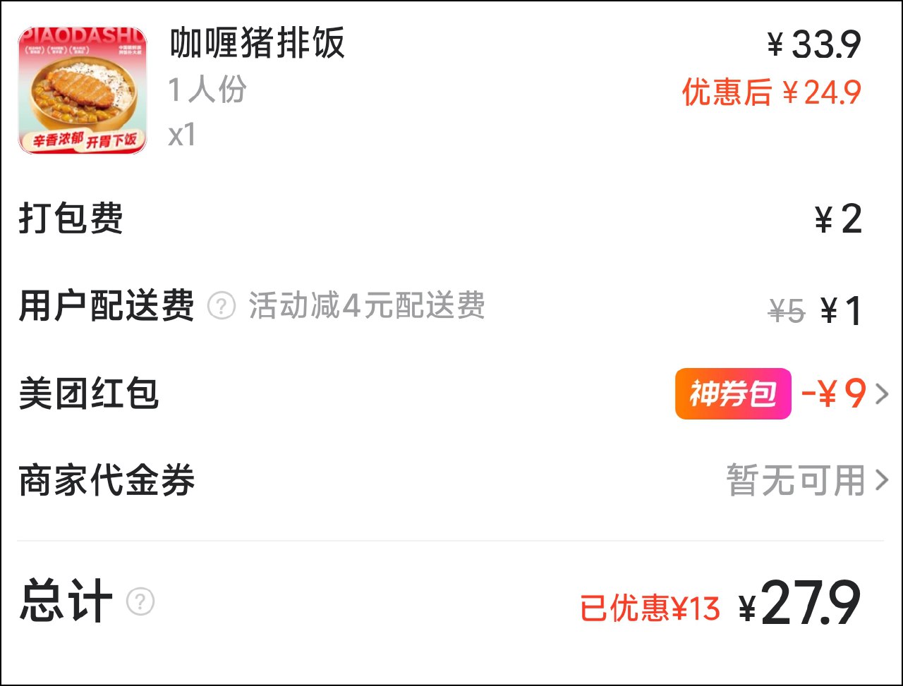 同一个套餐 京东的还送两个配菜, 价格还便宜 😕